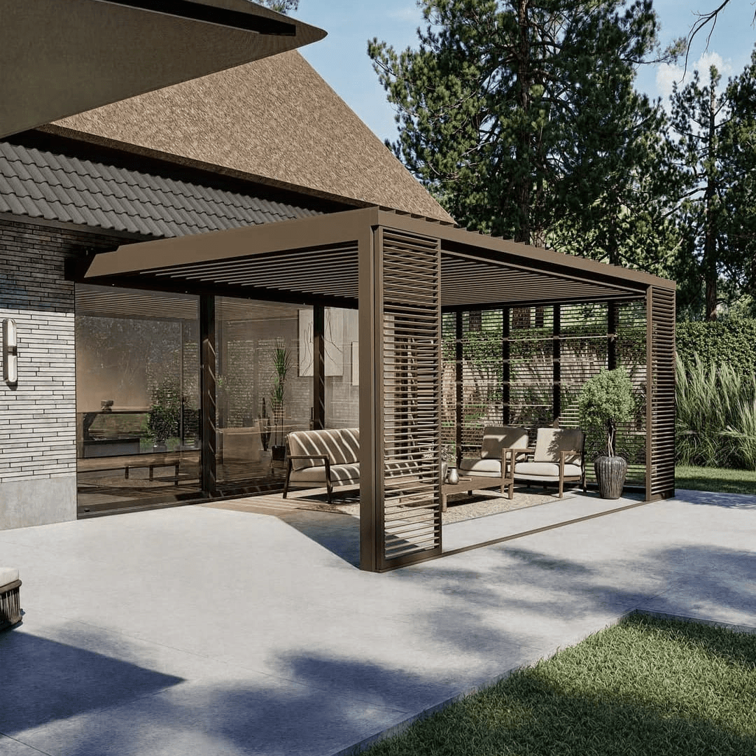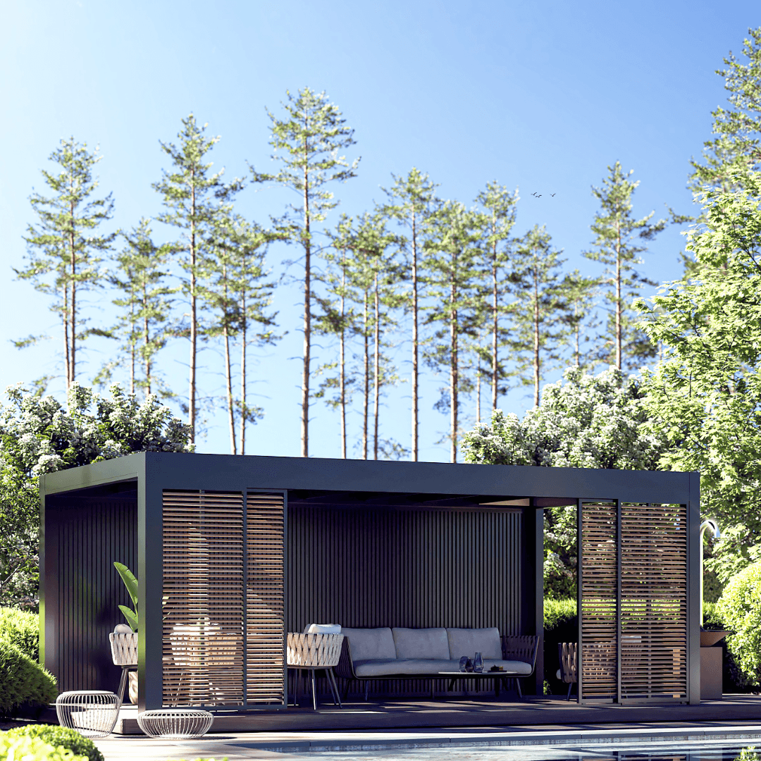 Genießen Sie Komfort, Stil und Schutz mit unseren maßgefertigten Terrassenüberdachungen, Glaswänden und Lamellendächern.